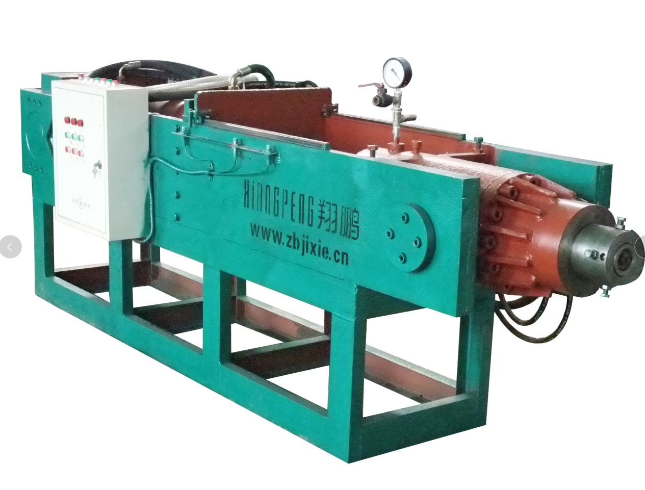 設(shè)備由主機、液壓系統(tǒng)、控制系統(tǒng)、抽真空系統(tǒng)及制品托架(客戶自配)構(gòu)成。主要特點是:工作壓力大(主液壓缸產(chǎn)生的推力可高達300T--1600噸以上),效率高,結(jié)構(gòu)新穎,造型美觀,操作控制十分方便,大大降低了工人的勞動強度??芍谱魈蓟柚破分械母鞣N管、棒、板等型材,是一種具有高性能節(jié)能的設(shè)備。